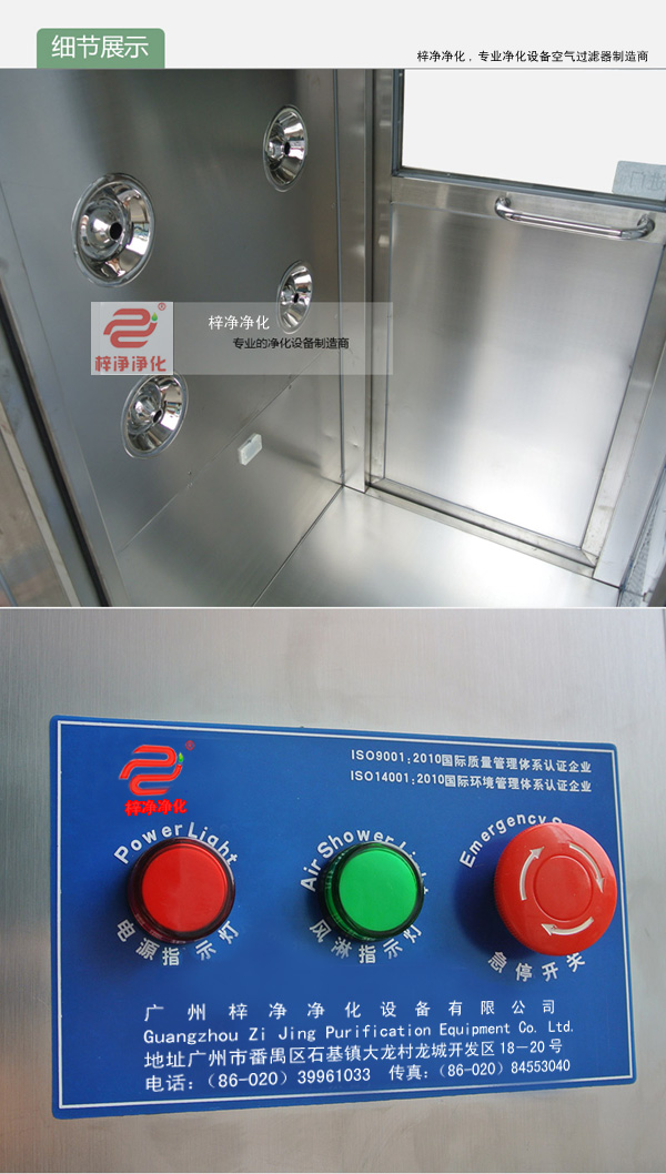 工作原理:用于人員出入,防止不潔凈氣流進(jìn)入潔凈區(qū),工作區(qū)內(nèi)設(shè)置吹淋凈化處理裝置,消除人、物表面附著塵埃,同時具有氣閘作用,配合潔凈空調(diào)系統(tǒng)確保潔凈室達(dá)到所需潔凈度。