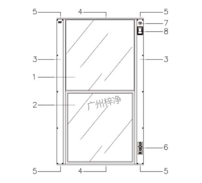 1固定窗(透明玻璃) 2活動窗(透明玻璃) 3左右堅框 ?4上下鏈接框? ?5安裝螺絲孔(位于上下連接框上下左右四個角點處)? ?6輕觸式開關控制板 ????7電源線接口 ????8電機飾蓋。