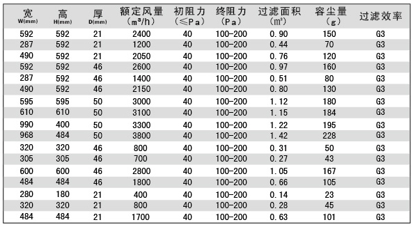 用戶選購指南-耐高溫初效過濾器技術(shù)參數(shù)