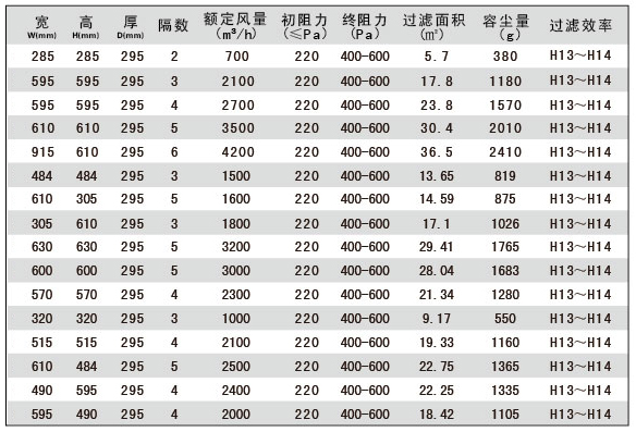 組合式耐高濕高效空氣過濾器技術參數