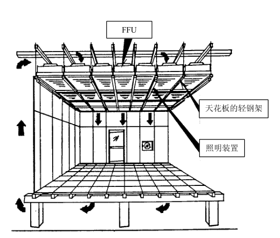 FFU安裝示意圖介紹了FFU與天花照明安裝時的布置。
