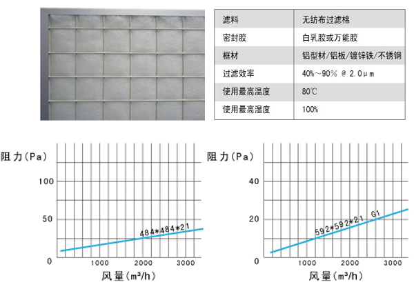 板式初效過濾器技術參數